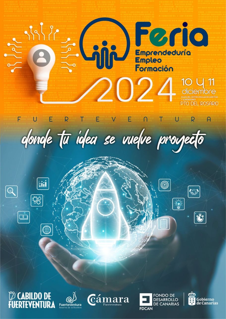 El Cabildo de Fuerteventura, junto con la Consejería de Educación y Juventud y la Cámara de Comercio de Fuerteventura, organiza la Feria de Emprendeduría, Empleo y Formación 2024, bajo el lema «Donde tu idea se vuelve proyecto». Este evento, financiado por el Fondo de Desarrollo de Canarias (FDCAN), busca convertirse en un referente para fomentar la empleabilidad, la innovación y el emprendimiento en la isla.