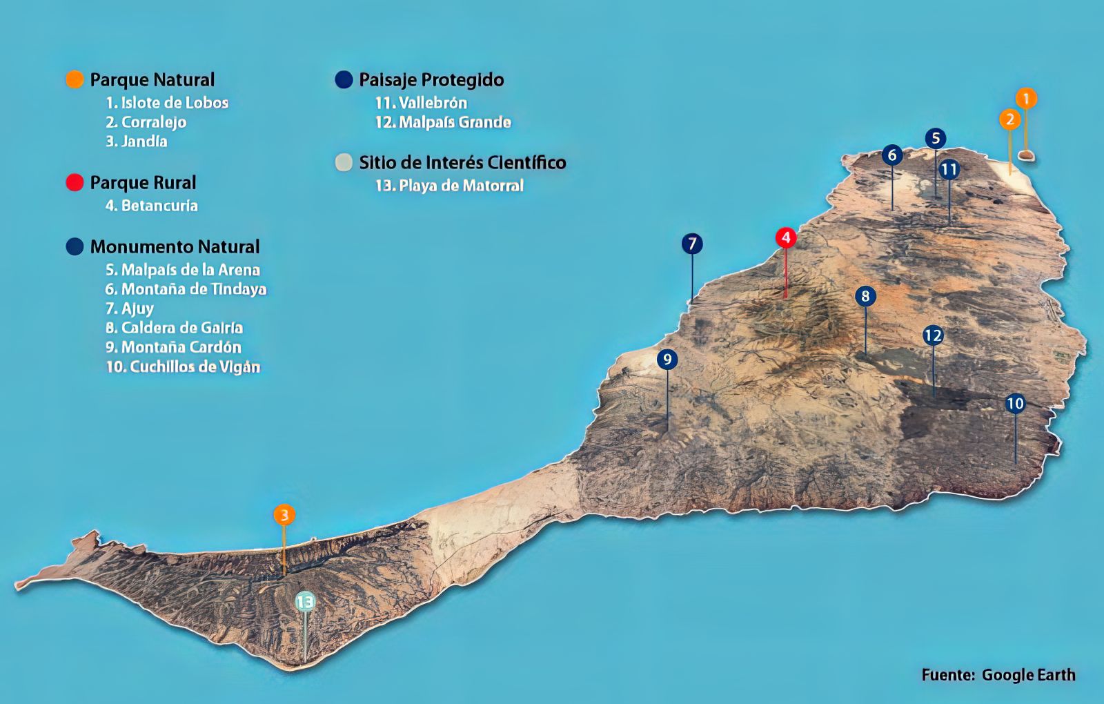 - Parque rural de Betancuria: 16.544 hectáreas (34,7%), el mayor bloque insular.
