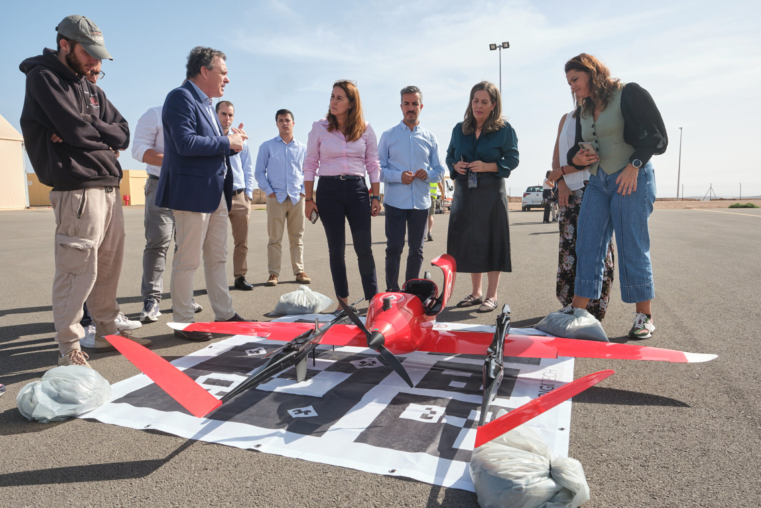 Durante la jornada, los representantes del Cabildo presenciaron las primeras pruebas de vuelo de plataformas aéreas no tripuladas en el Canarias Stratoport, un centro especializado en sistemas aéreos de vuelo persistente (UAS). Este espacio cuenta con una pista de 900 metros y una zona circular de pruebas de 500 metros de radio, libre de obstáculos, lo que lo convierte en una infraestructura clave para la investigación, desarrollo y mantenimiento de tecnologías aeroespaciales.