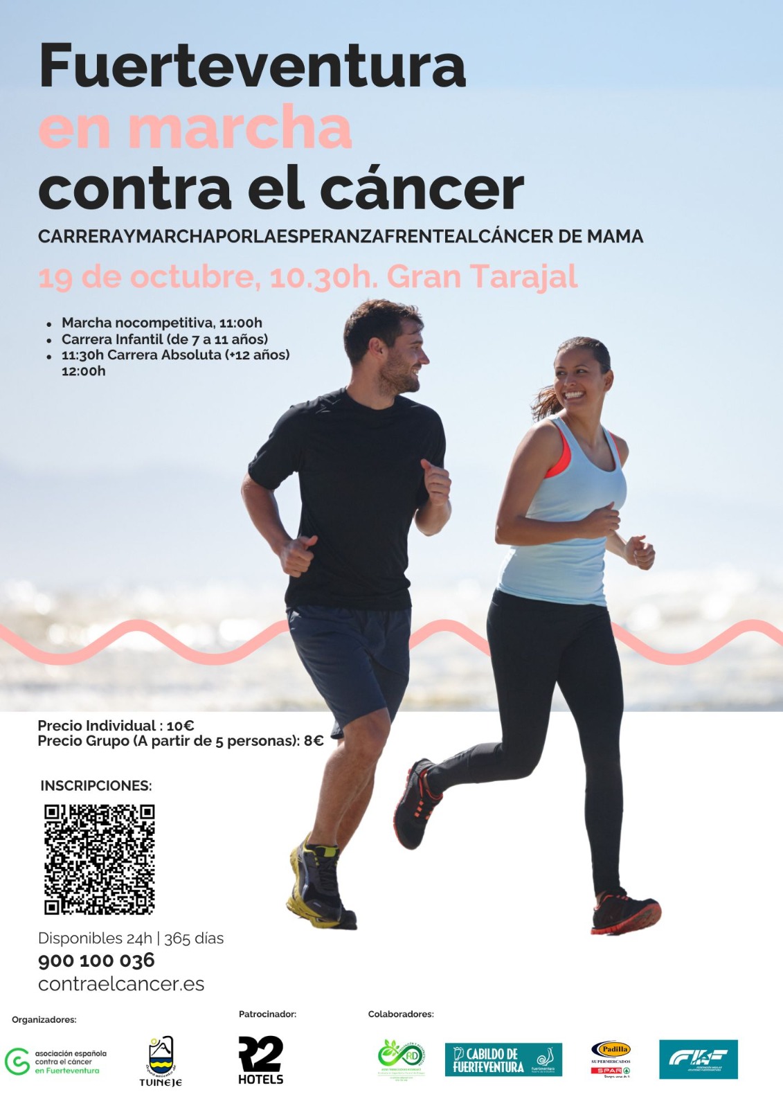 La Carrera y Marcha por la Esperanza cuenta con el patrocinio de R2 Hotels y la colaboración de la Federación Insular de Atletismo, Rosa Dodero Seguridad y Padilla Supermercados – Spar, reforzando el compromiso de la comunidad majorera con la sensibilización y la prevención del cáncer de mama.
