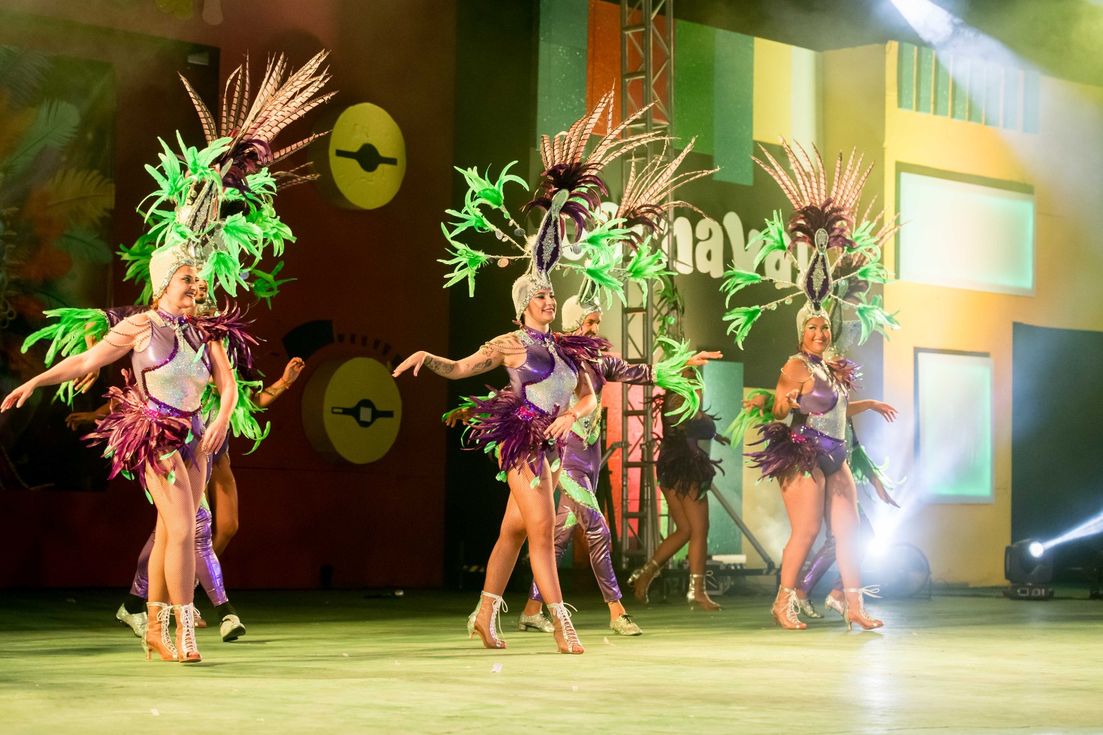 El evento estuvo acompañado por un vibrante programa de actuaciones que incluyó a la Batucada Timbayé, la murga ganadora del Concurso Municipal, varios grupos coreográficos, así como las comparsas Kirumba y Grimanesa, ofreciendo al público una noche cargada de ritmo, energía y espectáculo.