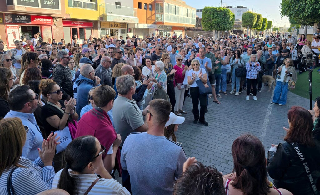 El asesinato del 27 de diciembre fue el punto de inflexión para los vecinos de Corralejo. El dolor y la preocupación, acumulados durante meses de denuncias por la creciente inseguridad, llevaron a que cerca de 300 personas acudieran a la cita, convocada a través de redes sociales y algunos medios locales, como Radio Insular. A falta de los permisos necesarios por parte de la Delegación del Gobierno, los organizadores denominaron al evento una «huelga«, aunque lo que se vivió en la Avenida Ntra. Sra. del Carmen esta tarde fue una manifestación espontánea del hartazgo colectivo.