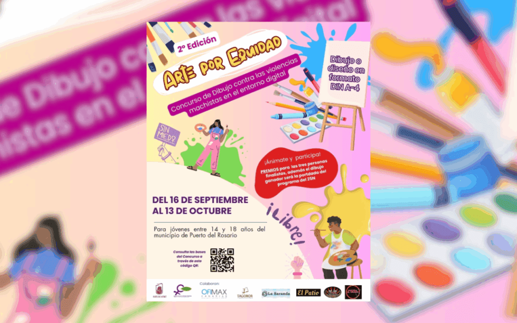 Con motivo del 25N, el Ayuntamiento de Puerto del Rosario y la Federación de Asociaciones de Mujeres Arena y Laurisilva (FAMAL) lanzan la segunda edición del concurso de dibujo “Arte por la Equidad: Violencias machistas en el entorno digital”, integrado en el programa municipal “25N en Puerto del Rosario: Construyendo comunidad frente a las violencias machistas”.