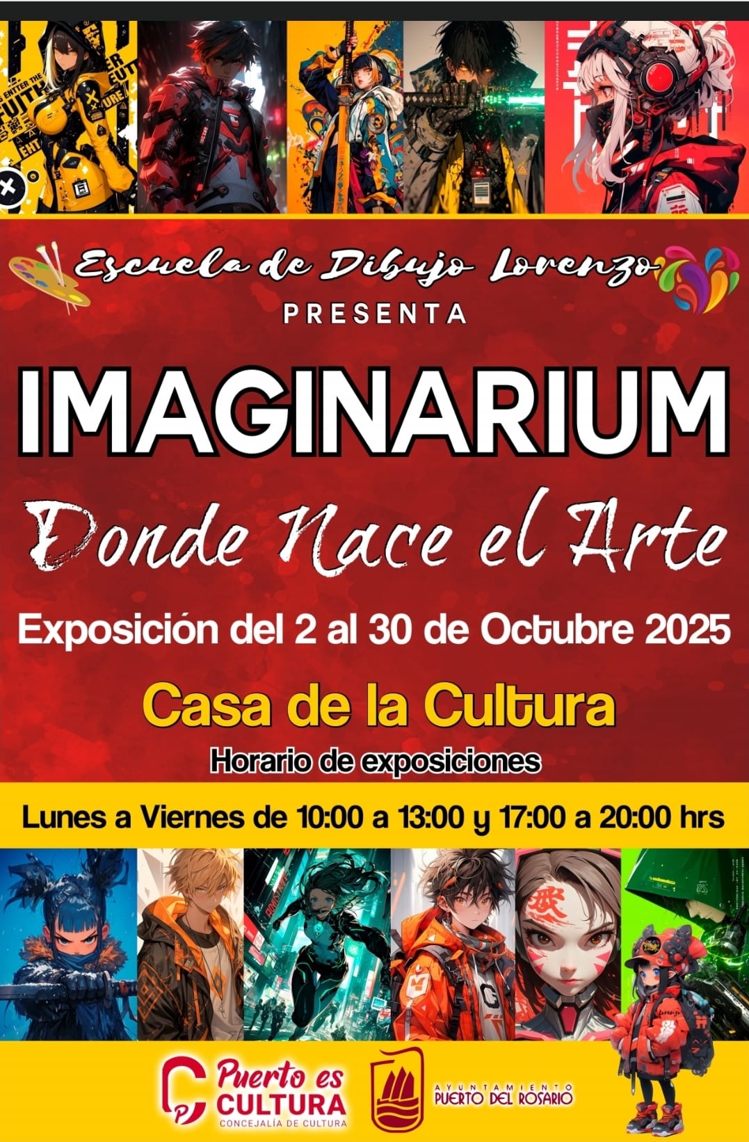 Puerto del Rosario inauguró este jueves la exposición Imaginarium. Donde nace el arte, organizada por la Escuela de Dibujo Lorenzo, que se podrá visitar en la Casa de la Cultura hasta el próximo 30 de octubre. La muestra reúne decenas de obras realizadas por jóvenes estudiantes de la academia y se convierte en un escaparate de creatividad, esfuerzo y aprendizaje colectivo.