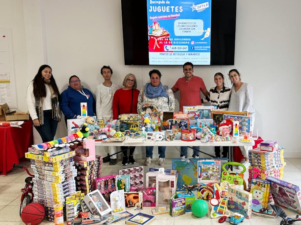 Desde las Juventudes Socialistas de Fuerteventura y FIMAPA quieren agradecer públicamente la colaboración de los centros, las AMPAs, y por supuesto de todas las personas, jugueterías, librerías, negocios y supermercados que han participado entregando juguetes, difundiendo el cartel en sus establecimientos y redes sociales, o difundiendo la información boca a boca.