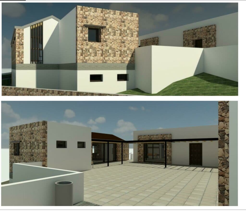 - El Ayuntamiento de Antigua se propone con esta obra Mejorar el actual centro cultural de Agua de Bueyes, eliminar barreras en accesos y dependencias, y ampliar espacio de uso con la construcción de un nuevo edificio comunicado por un patio interior con áreas de sombra y bancos de descanso.