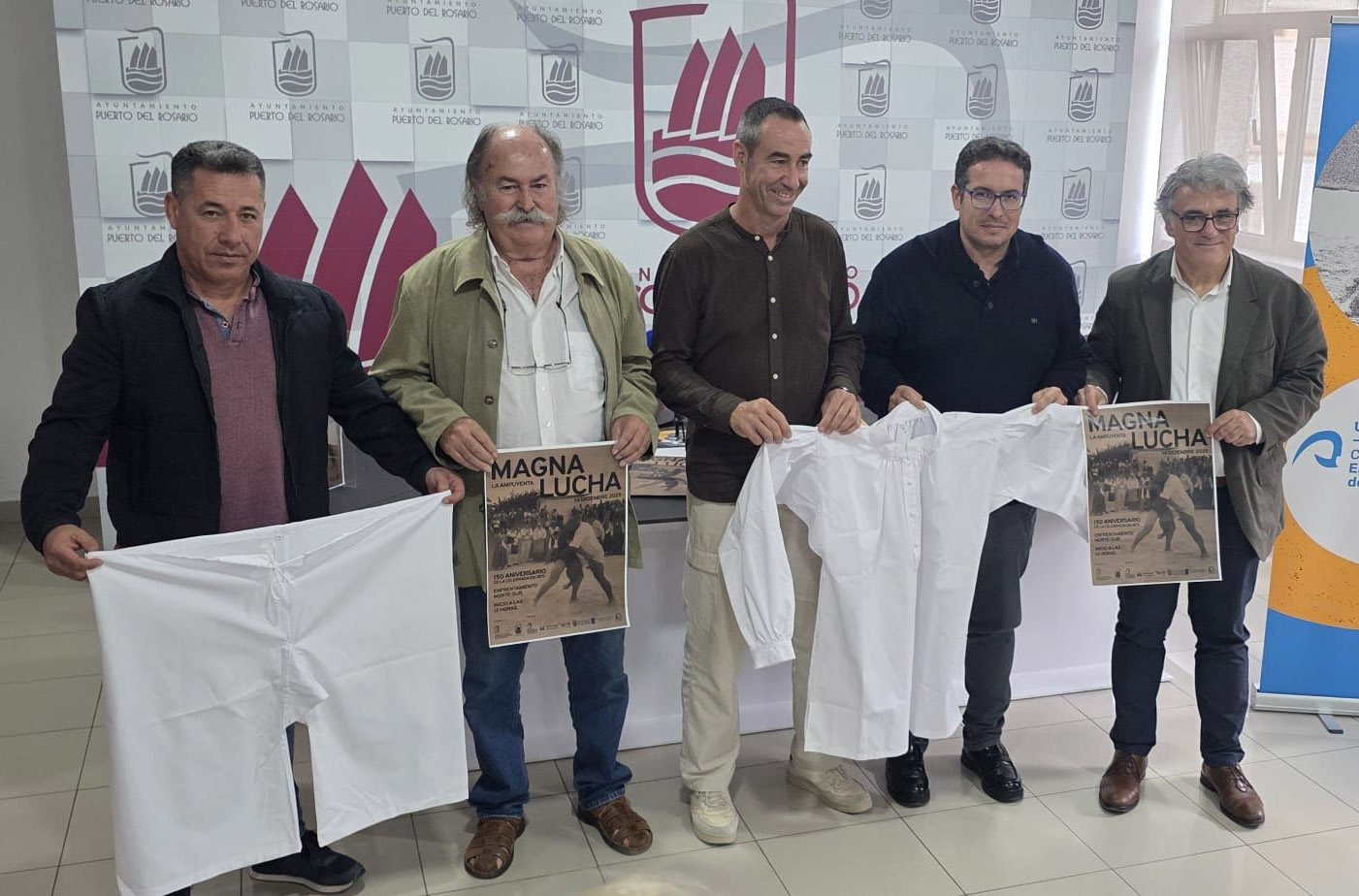 La Ampuyenta se prepara para viajar un siglo y medio atrás en el tiempo con la recreación de la legendaria “Lucha Magna” de 1875, uno de los episodios más simbólicos de la historia de la lucha canaria en Fuerteventura. El Ayuntamiento de Puerto del Rosario, a través de la Concejalía de Pueblos, Barrios y Patrimonio Histórico, y la Cátedra Universitaria Emilio Rivero Rodríguez de Lucha Canaria de la ULPGC, presentó este jueves todos los detalles del evento, que tendrá lugar el domingo 14 de diciembre en el histórico enclave de la “gavia de la lucha”.