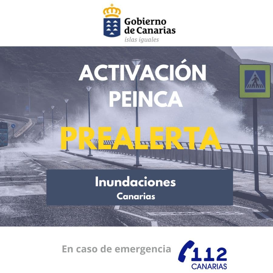 El Gobierno de Canarias ha activado la situación de prealerta por riesgo de inundaciones costeras y pluviales, comenzando a las 15:00 horas del miércoles 18 de marzo. Esta medida se basa en la información proporcionada por la Agencia Estatal de Meteorología y otras fuentes, siguiendo el Plan Especial de Protección Civil y Atención de Emergencias por Riesgo de Inundaciones de Canarias (PEINCA).
