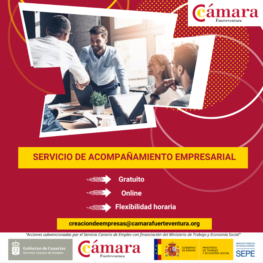La Cámara de Comercio de Fuerteventura lanza un año más el Servicio de Acompañamiento Empresarial que proporcionará un seguimiento individualizado y gratuito a empresas o autónomos de menos de tres años de constitución.