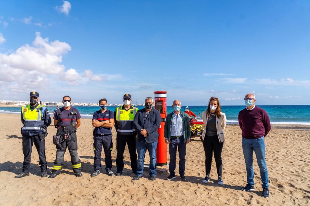 El pasado mes de octubre de 2020, se procedió a la instalación en una primera fase de un nuevo e innovador sistema de seguridad y emergencias en la playa de Los Molinos. Ahora, en una segunda fase, dos de estos dispositivos, de una patente mundial creada en Canarias, ya han sido instalados en Playa Blanca y otro en el litoral de Puerto Lajas, de un total de los cinco previstos que continuarán reforzando la seguridad en los puntos críticos de la costa del municipio.