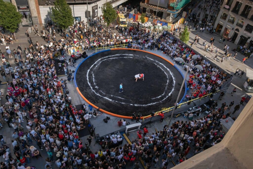 La lucha canaria hace historia en Madrid con una luchada oficial en plena Plaza de Callao
