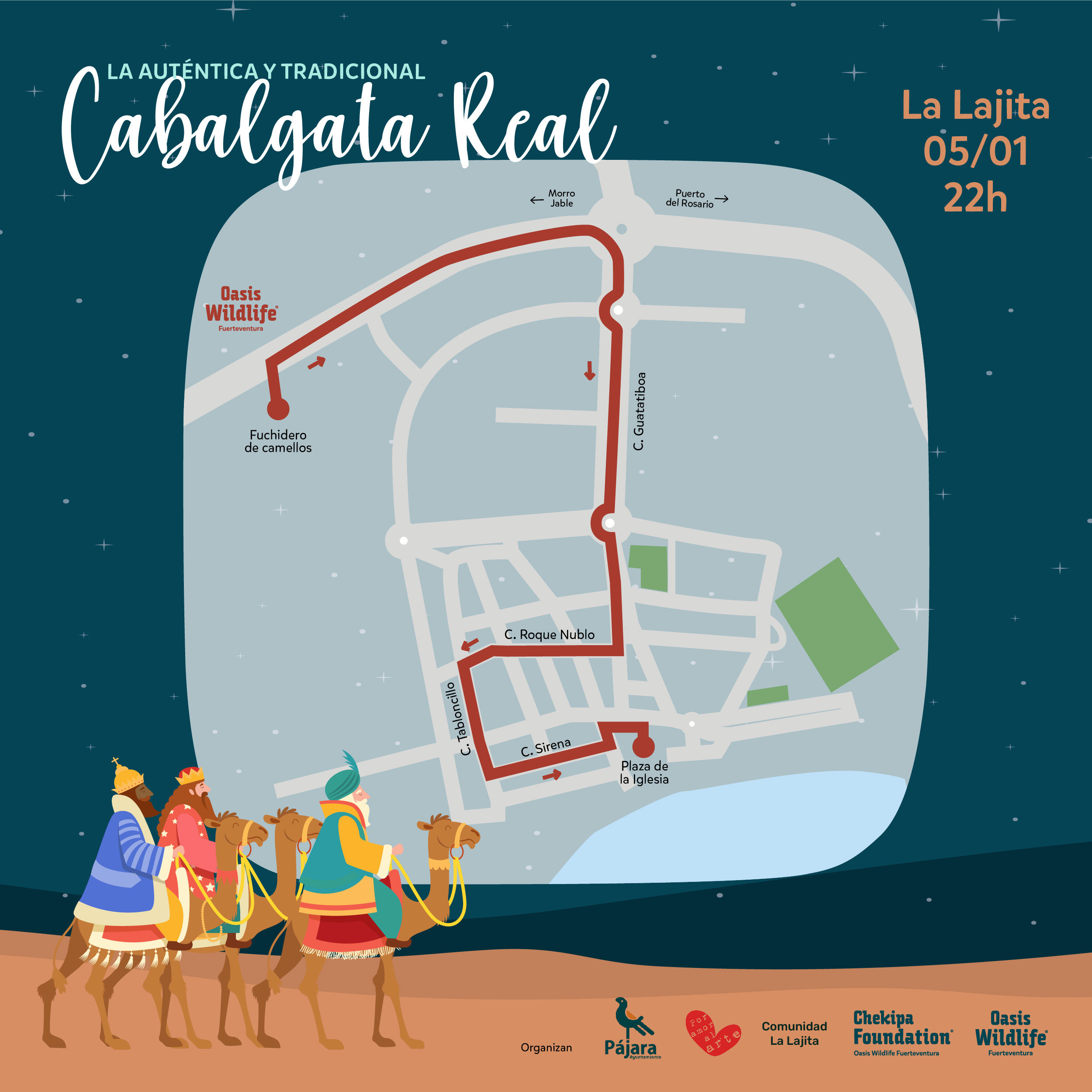 Organizada por la Fundación Chekipa de Oasis Wildlife, el Ayuntamiento de Pájara y los vecinos del pueblo, con la colaboración del Club Deportivo, la cabalgata refleja el esfuerzo colectivo por preservar la identidad cultural de Fuerteventura.