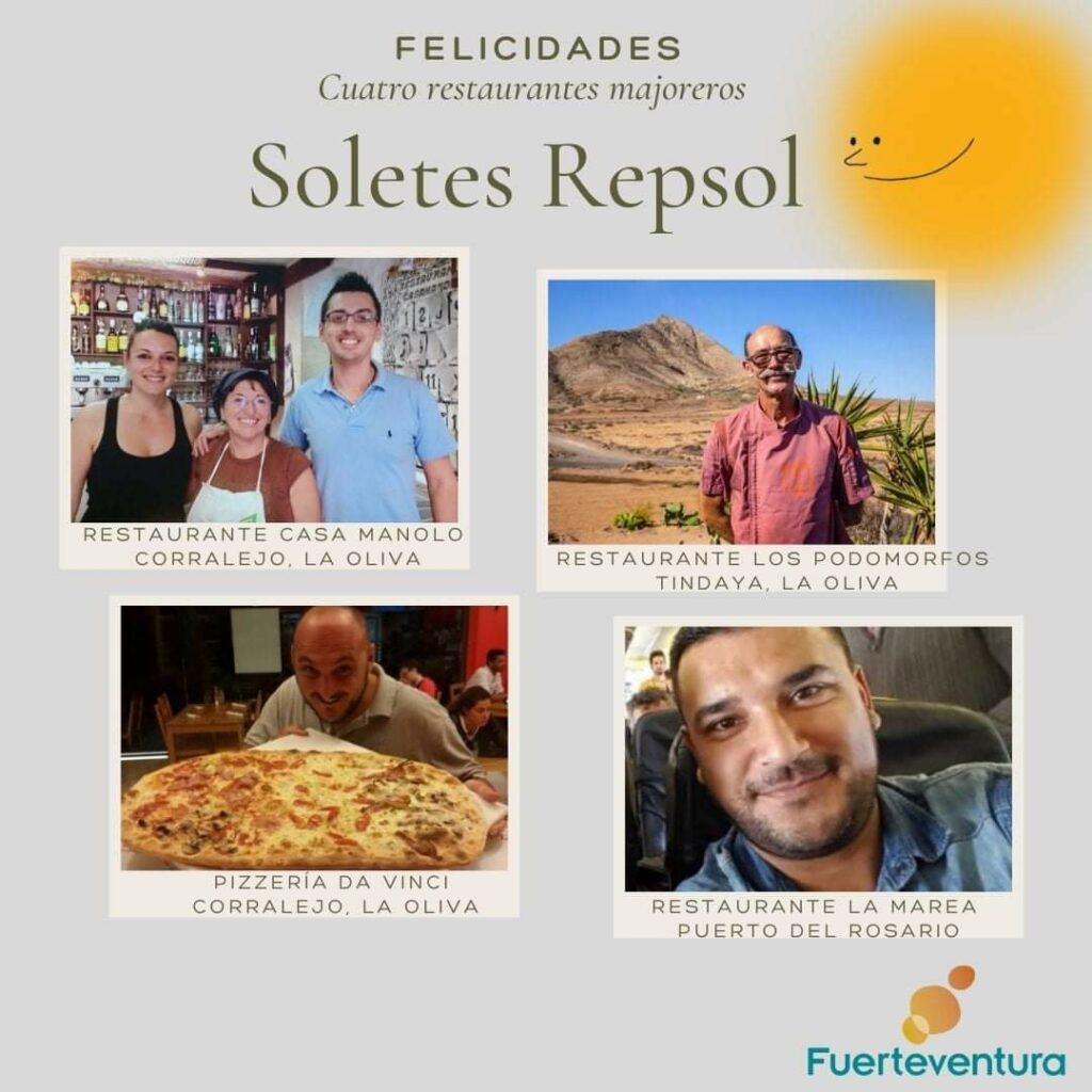 La consejera de Turismo del Cabildo de Fuerteventura, en nombre de toda la Corporación insular, felicitan a los restaurantes La Marea (Puerto del Rosario) y Los Podomorfos (Tindaya) y a la pizzería Da Vivi y Casa Manolo ambos en Corralejo, que acaban de obtener la nueva distinción de la Guía Repsol, denominada Solete