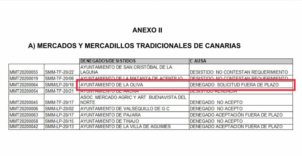 La agrupación local de Coalición Canaria en el norte de la isla denuncia que el Ayuntamiento de La Oliva ha perdido la subvención del Gobierno de Canarias para apoyar a los mercadillos del municipio y al sector artesanal.