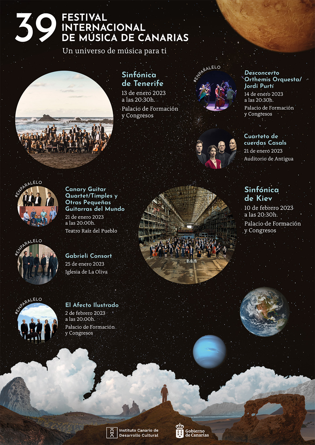 Bajo la organización del Gobierno de Canarias, en colaboración con el Cabildo Insular y con la dirección artística de Jorge Perdigón, la edición 2023 del Festival de Música contará en Fuerteventura, entre sus actuaciones más destacadas, con la Orquesta Sinfónica de Kiev, que ofrecerá un concierto “verdaderamente especial”, en palabras de Perdigón, el próximo día 10 de febrero en el Palacio de Formación y Congresos de Fuerteventura.
