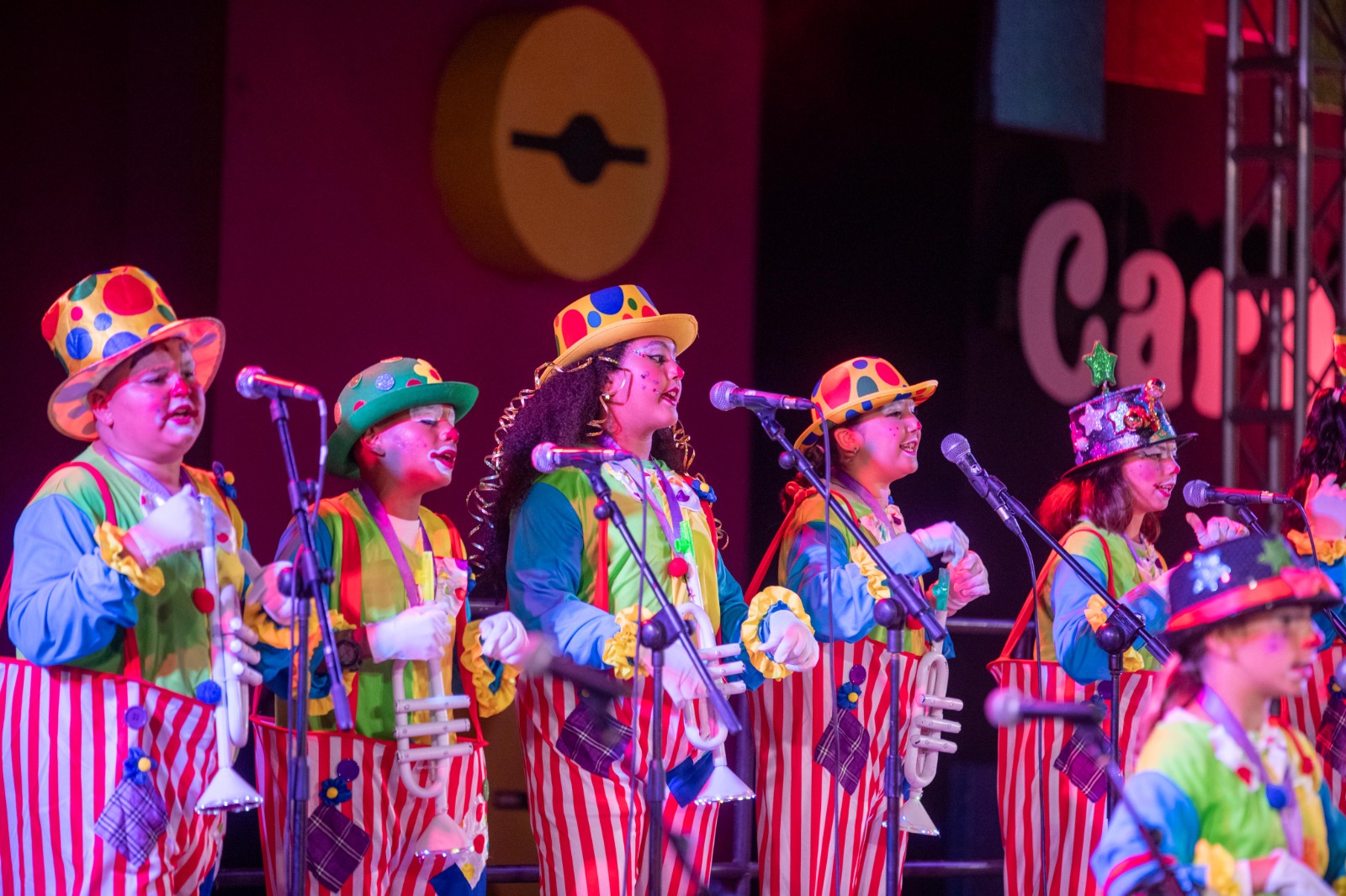 Los más jóvenes del carnaval abrieron la noche con su tema «Había una vez», demostrando que el ingenio y la denuncia no tienen edad. Su letra transformó la realidad municipal en un circo de políticos donde todo es promesas y poco es acción.