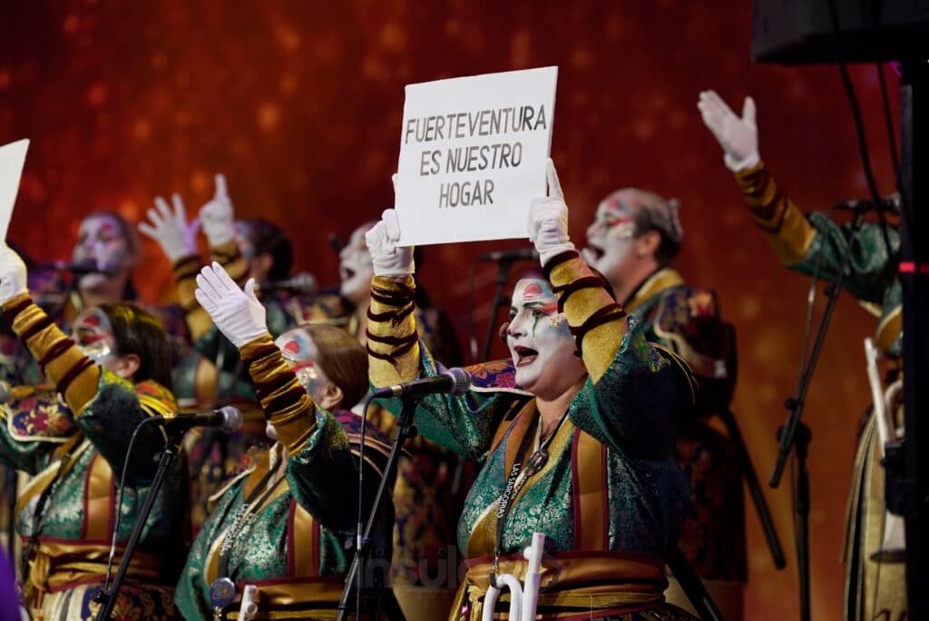 Con un repertorio que mezcló crítica social, humor y emoción, la murga de Corralejo celebró sus 20 años sobre el escenario consolidándose como una de las grandes protagonistas del concurso.