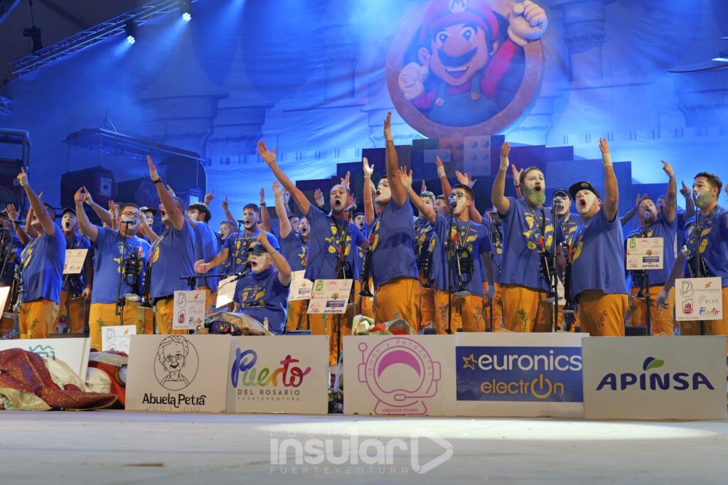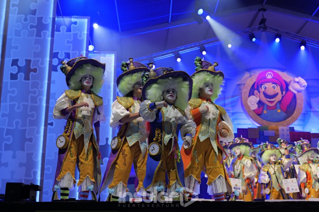La murga Los Gambusinos dejó claro en el Encuentro de Murgas de Puerto del Rosario que el carnaval es mucho más que disfraces y alegría. Con una actuación cargada de sátira y crítica social, el grupo majorero no se mordió la lengua y disparó con puntería contra la doble insularidad, la falta de recursos sanitarios y educativos, la lucha contra el cáncer y la gestión política en emergencias.