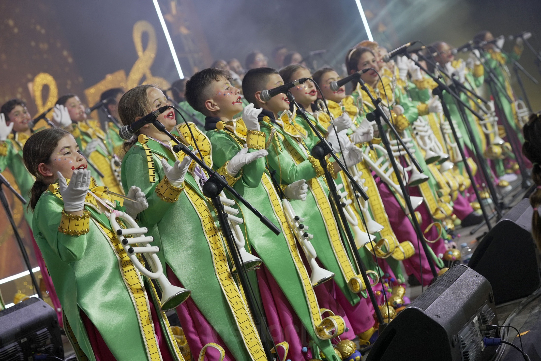 La actuación mantuvo el tono carnavalero y cercano durante todo el número, con mensajes de agradecimiento a las murgas adultas por apoyar a la cantera y una despedida centrada en la alegría del carnaval.