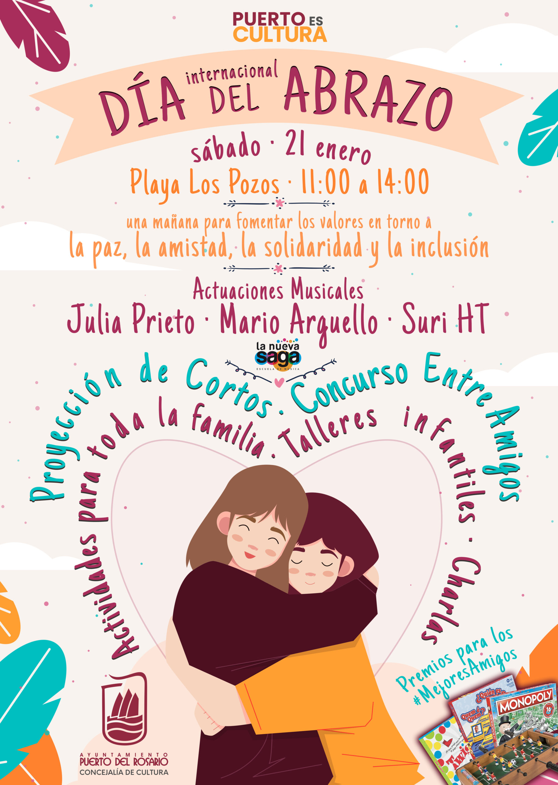 Este sábado, 21 de enero, de 11.00 a 14.00 horas, toda la familia podrá disfrutar en la playa de Los Pozos de muchas actividades infantiles que organiza la Concejalía de Cultura, dirigida Juan Manuel Verdugo, para celebrar el Día Internacional del Abrazo.