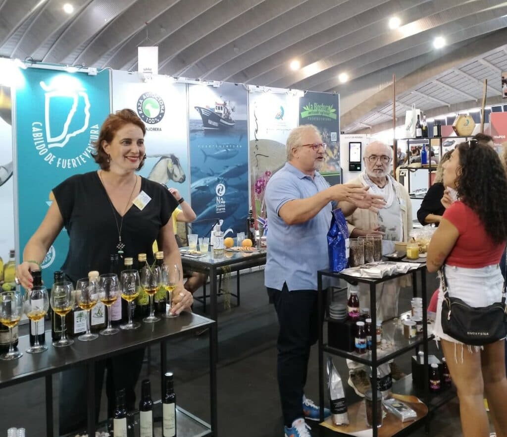El stand ha contado con cuatro mostradores, apostando por la degustación directa por parte del cliente y la defensa de las elaboraciones con la participación de algunos de los propios productores. De este modo, se ha establecido un contacto directo entre cliente y productor, con catas de sabores primarios de Fuerteventura como el queso desde la DOP Queso Majorero, los 13 aceites envasados en Fuerteventura, vino, gofio, miel, así como productos elaborados como mermeladas, mojos o el siempre llamativo licor de cabra, entre otros.