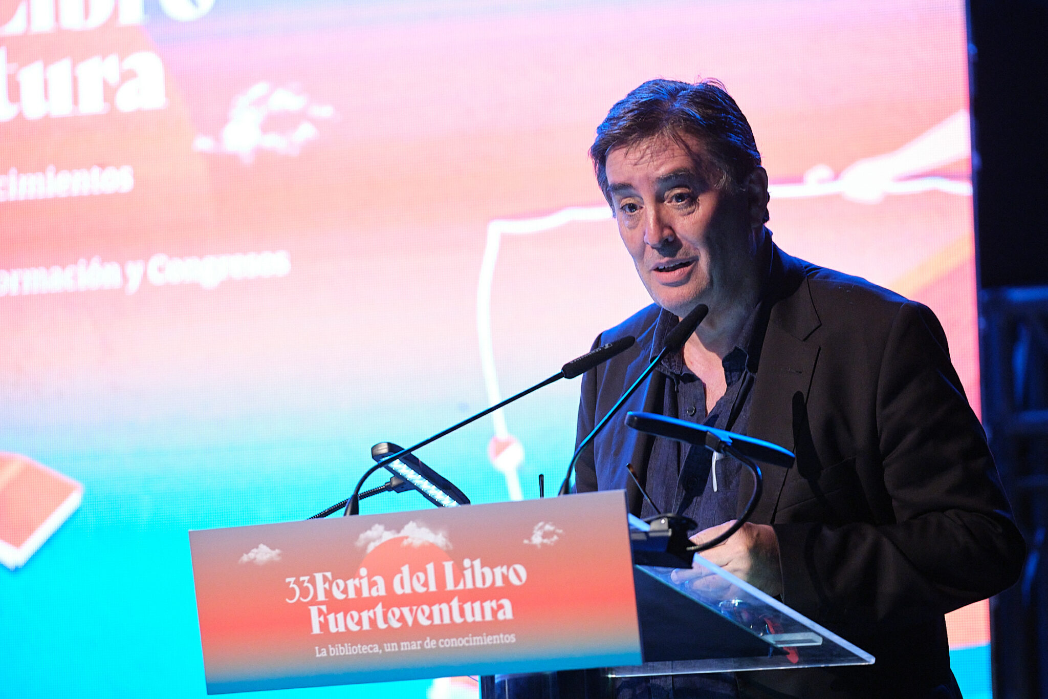 - El poeta granadino Luis García Montero fue el encargado de dar el pistoletazo de salida a la 33 edición de la Feria del Libro de Fuerteventura, que se extenderá hasta el domingo 22 de octubre en la Plaza del Palacio de Formación y Congresos con la presencia de cerca de 30 autores.