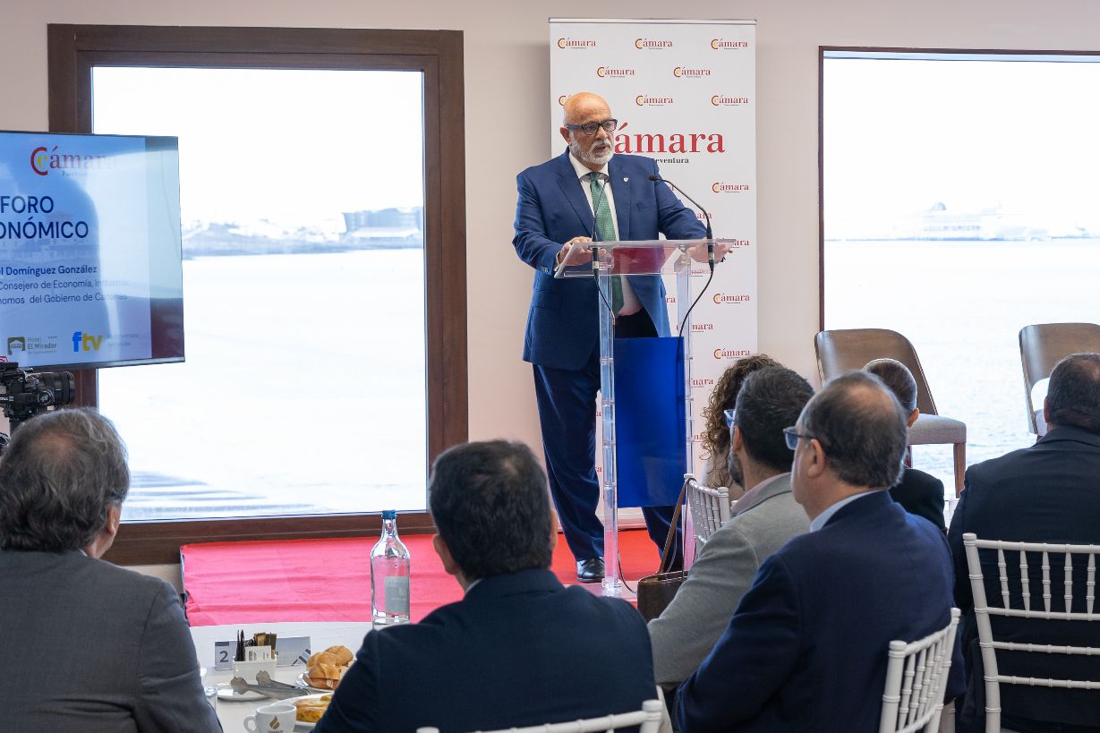 La Cámara de Comercio de Fuerteventura ha dado inicio este martes al primero de los cuatro Foros Económicos previstos para 2025, un espacio destinado al análisis y debate sobre los desafíos y oportunidades económicas del Archipiélago. La inauguración ha estado a cargo del vicepresidente del Gobierno de Canarias y consejero de Economía, Industria, Comercio y Autónomos, Manuel Domínguez, quien expuso un diagnóstico de la situación económica actual y adelantó algunas de las medidas que pondrá en marcha el Ejecutivo regional.