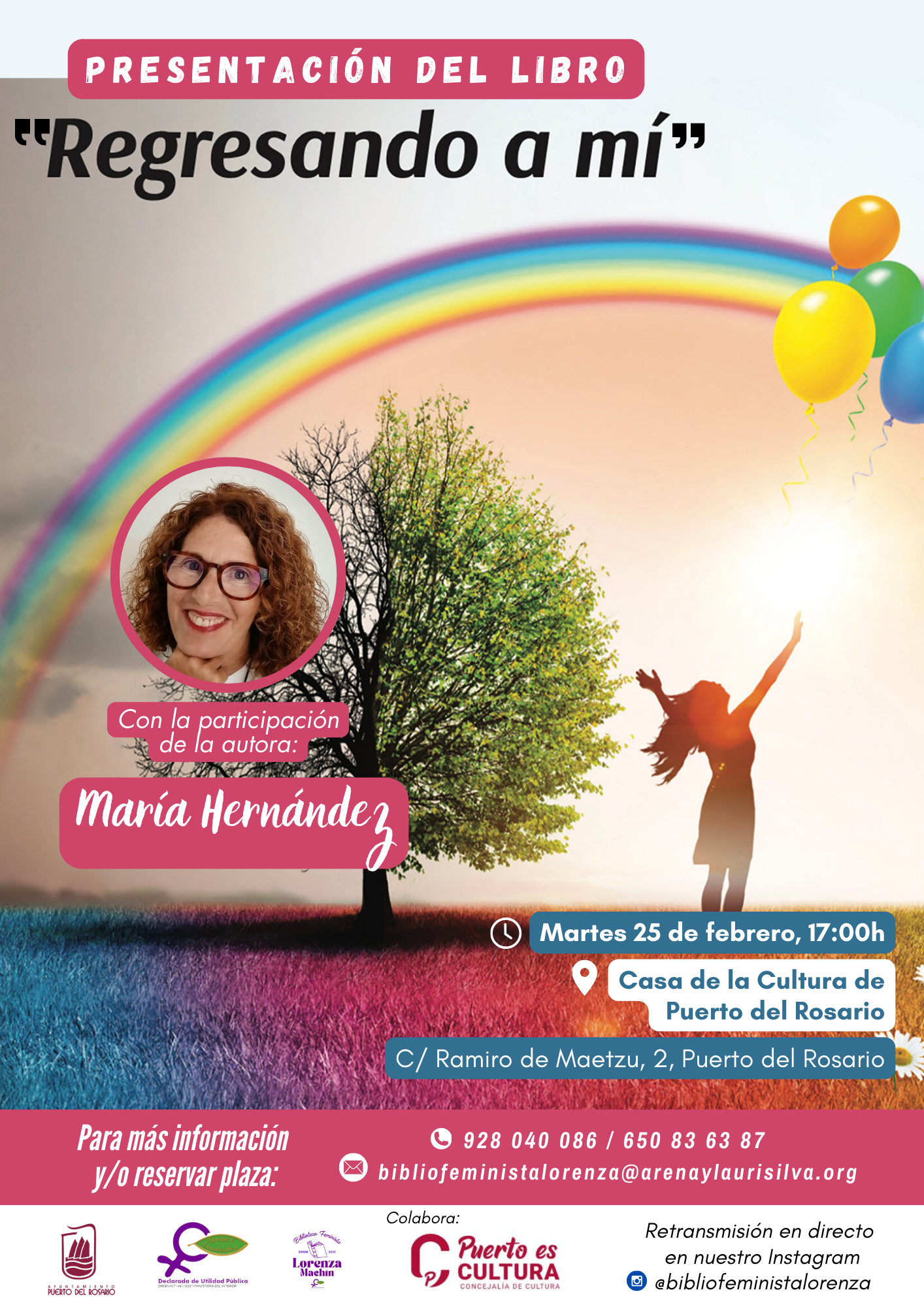 La Biblioteca Feminista Lorenza Machín de la Federación de Asociaciones de Mujeres Arena y Laurisilva acogerá la presentación del libro Regresando a mí, de María Hernández, el próximo martes 25 de febrero a las 17:00 horas. El evento tendrá lugar en la Casa de la Cultura de Puerto del Rosario, ubicada en la calle Ramiro de Maeztu, 2.
