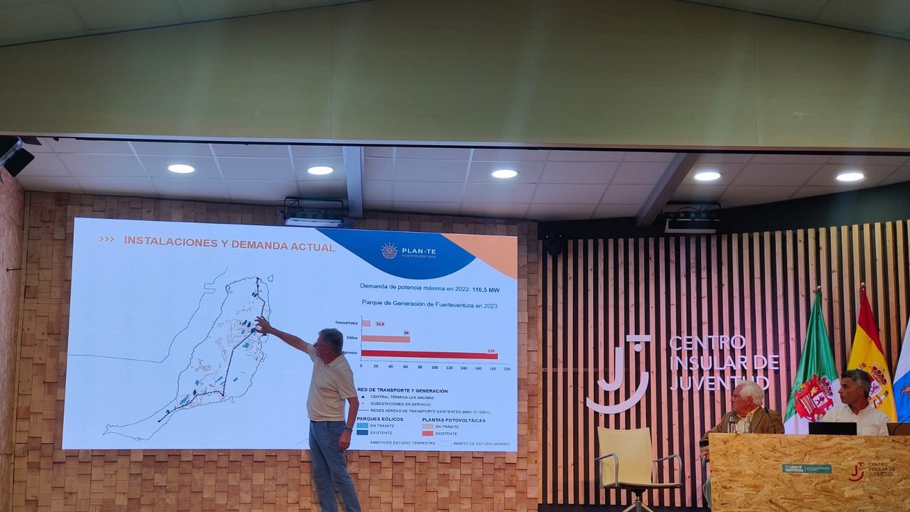 “No queremos que nos hagan otra vez lo que nos hicieron en la legislatura pasada el gobierno del Pacto de las Flores, Partido Socialista, Podemos y Nueva Canarias, que por decreto de interés general nos pusieron la línea de 132, y a partir de ahí han crecido como hongos las placas y los molinos en el entorno de esa línea. Ese no es el futuro de Fuerteventura”, recalcó. Una línea, además, criticó, necesaria para conectar Gran Canaria, Fuerteventura y Lanzarote.