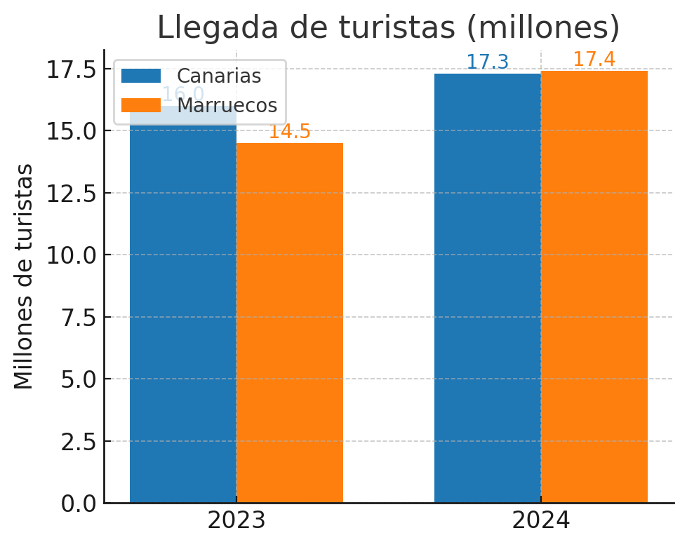 Evolución de turistas en Canarias y Marruecos (2023-2024)