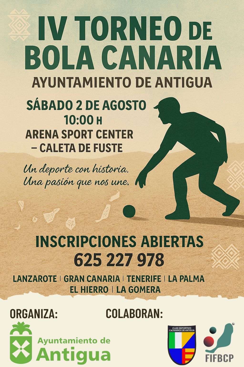 Todo está listo en Caleta de Fuste para celebrar este sábado, 2 de agosto, el IV Torneo de Bola Canaria Ayuntamiento de Antigua, una cita consolidada en el calendario regional que reunirá a más de 250 jugadores distribuidos en medio centenar de equipos procedentes de Gran Canaria, Tenerife, La Palma, Lanzarote y Fuerteventura.