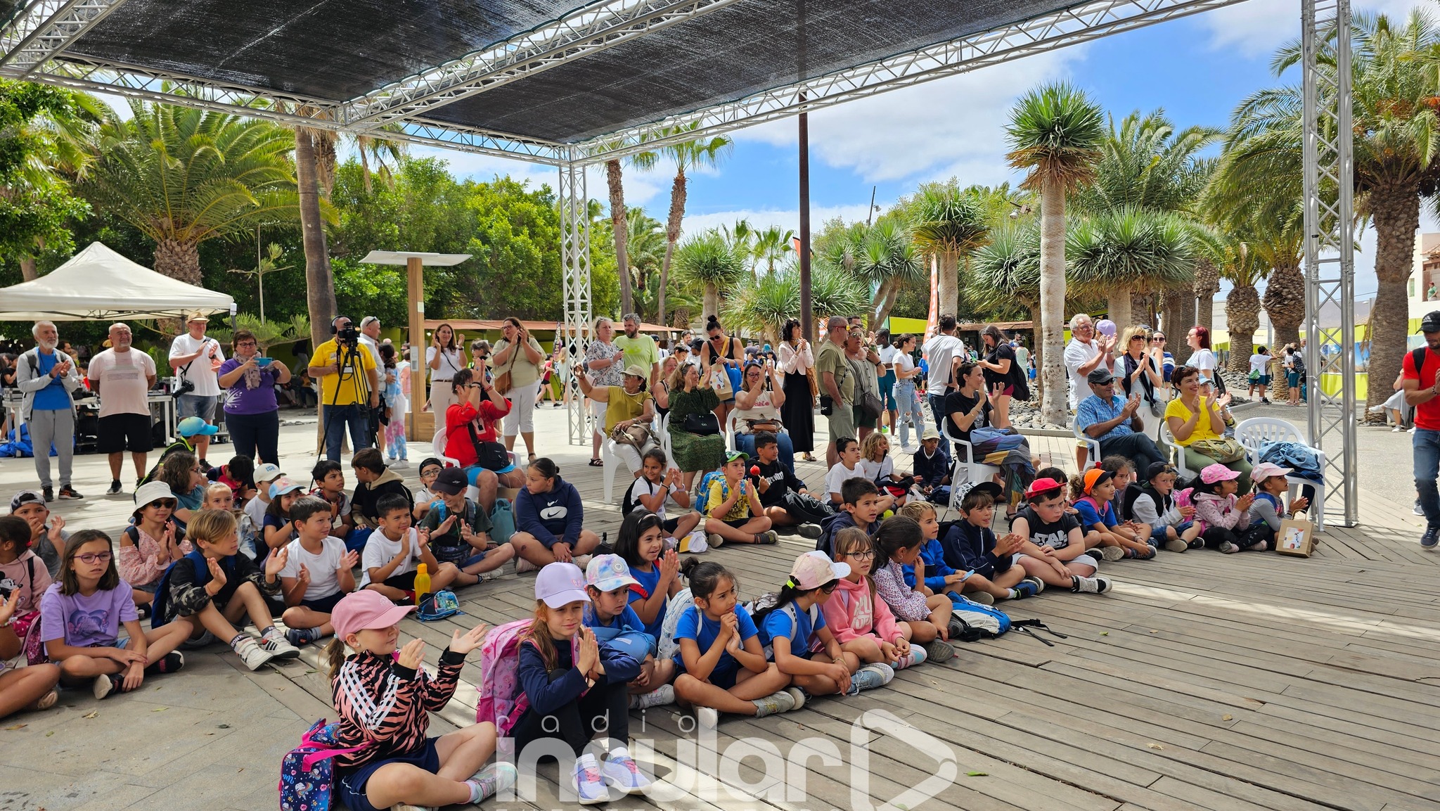 Más de 5.000 escolares de todos los municipios disfrutaron este viernes por la mañana de dragones de barro, cestas de palma, joyas de plata, muñecos de trapo, pulseras de cuero y la actuación musical Voces del Callejón de la Escuela Entre Siluetas y los juegos con el palo canario a cargo de la asociación Maho.