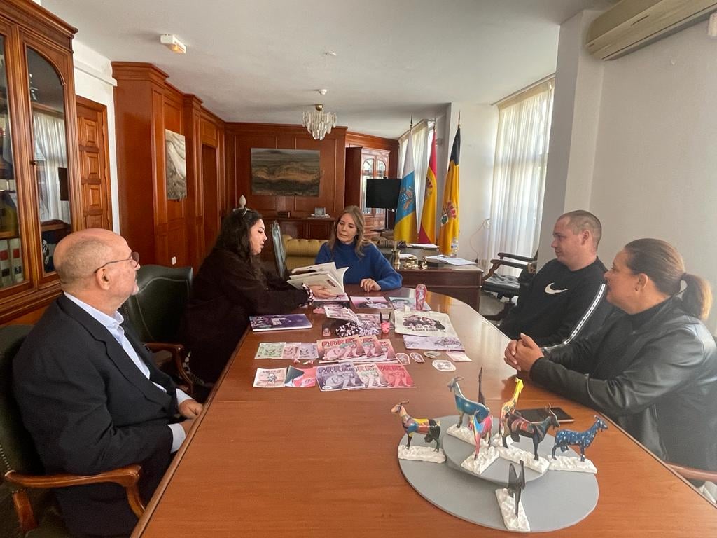 Mónica Umpiérrez, “Moño” como nombre artístico, ha recibido el apoyo y el reconocimiento del Ayuntamiento de La Oliva que ha querido conocer de primera mano la trayectoria de uno de los más firmes valores de la creación del cómic y la ilustración más allá del archipiélago. “Apostar por el talento y poder conocer su espectacular trabajo es una gran satisfacción y una sorpresa comprobar cómo desde Corralejo se puede lograr ser reconocida a pesar de su juventud en el panorama creativo nacional” le ha trasladado la alcaldesa Pilar González que junto a la concejal de cultura, Joanna Pérez y familiares de la artista pudieron conocer de primera mano su trayectoria así como el anuncio de la publicación en los próximos meses de su primera novela gráfica, BURROW editado por TEBEOX, cuya presentación se ha acordado se celebre en el Ayuntamiento de La Oliva.