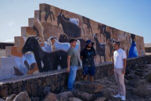 El alcalde de La Oliva, Isaí Blanco, subrayó la importancia de esta actuación: “El arte sirve como vehículo para trasladar un mensaje importante, recuperar elementos olvidados y otorgarles una segunda vida. A través de estos murales ponemos el foco en cómo embellecer una zona que, a pesar de ser transitada a diario por locales y visitantes de Los Lajares, estaba totalmente abandonada. De este modo, creamos un punto de interés que se aprovecha para contar la historia de los majoreros y majoreras.”