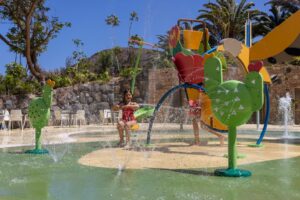 De esa extensión, 200 m² están dedicados a zonas húmedas de juego, divididas en dos áreas diferenciadas: una de 140 m² con juegos interactivos, y otra de 60 m² que recrea cuevas de tierra con cascadas. Pensado especialmente para el público infantil de entre 1 y 10 años, el Sabana Splash combina diversión, aprendizaje y bienestar. Entre sus 27 elementos acuáticos destaca un tobogán con forma de cactus, diseñado para el disfrute activo y seguro en plena naturaleza.