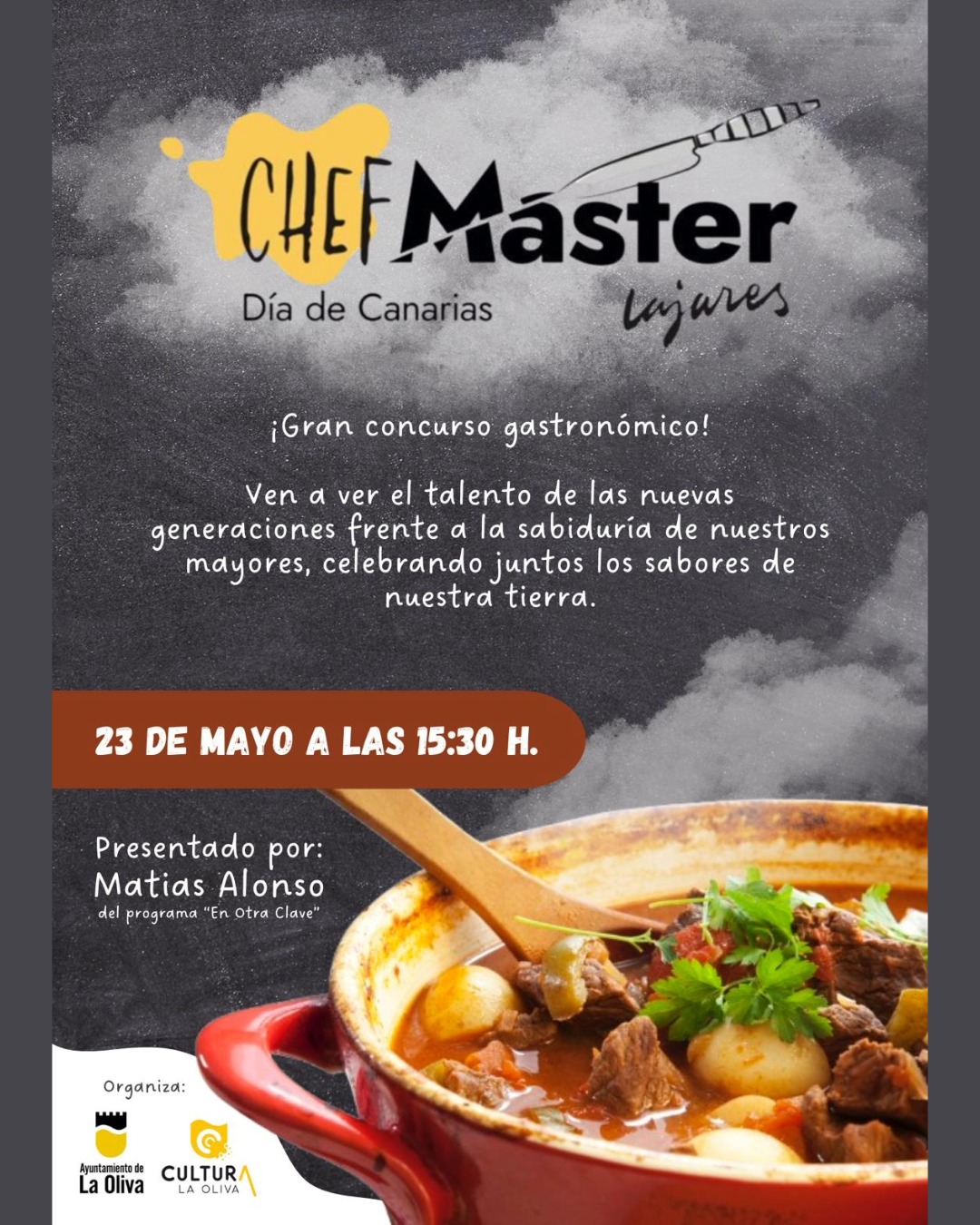 Los Lajares se preparan para vivir este viernes una jornada llena de sabor, tradición y música con motivo del Día de Canarias. La Oliva ha apostado este año por un formato que combina la cultura popular con propuestas gastronómicas participativas, como el estreno del Chef Master Lajares – Día de Canarias, un concurso culinario con identidad isleña que se celebrará el 23 de mayo a partir de las 15:30 horas.
