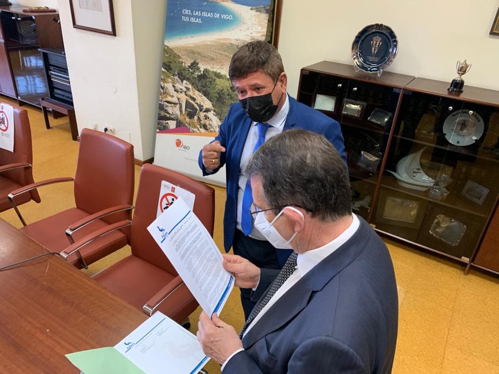 Pedro Armas entregó este documento al presidente de la FEMP y regidor de Vigo, Abel Caballero, con el fin de que los demás miembros de la Federación Española de Municipios y Provincias se sumen a esta propuesta