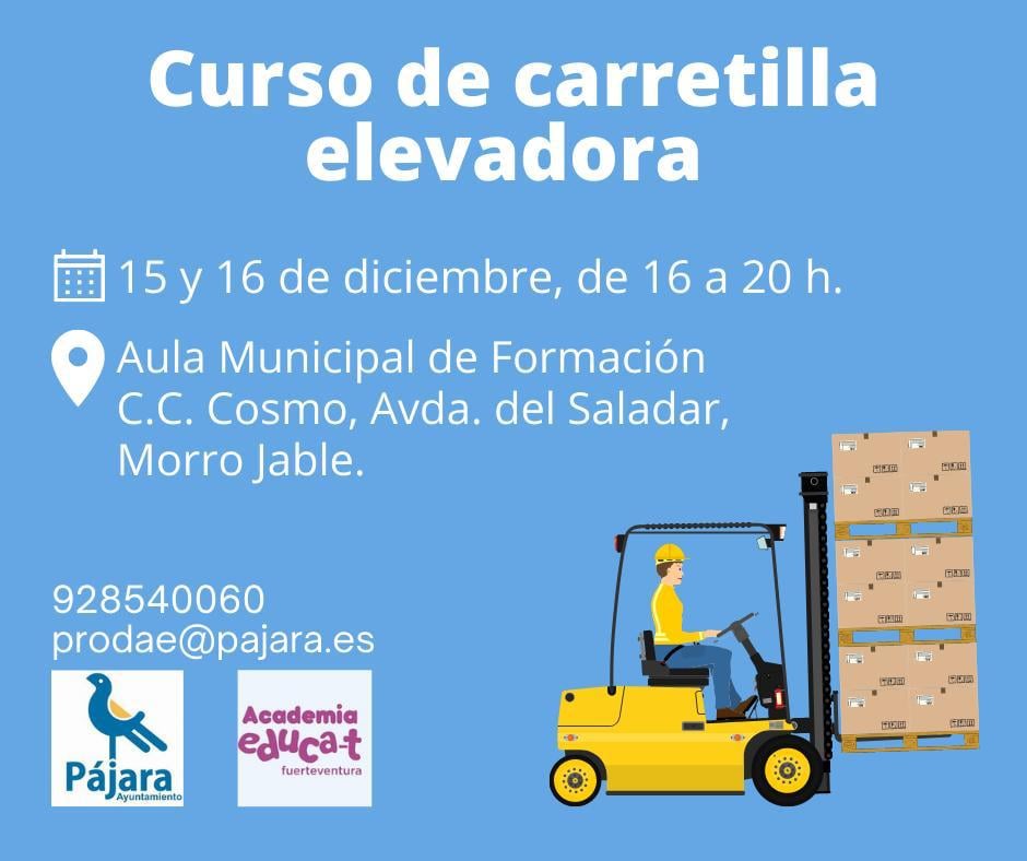 El Ayuntamiento de Pájara, a través de la Concejalía de Empleo y Desarrollo Local que coordina Rodrigo Berdullas, organiza un nuevo curso para el manejo de carretillas elevadoras.