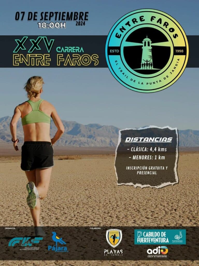 El Ayuntamiento de Pájara se prepara para acoger, un año más, la XXV edición de la carrera Entre Faros, que se celebrará el sábado 7 de septiembre, a las 18:00 horas, en el Puertito de la Cruz, en Punta de Jandía. Esta prueba deportiva comenzó a desarrollarse en el año 1998 y se enmarca dentro de las fiestas de El Pulpito.