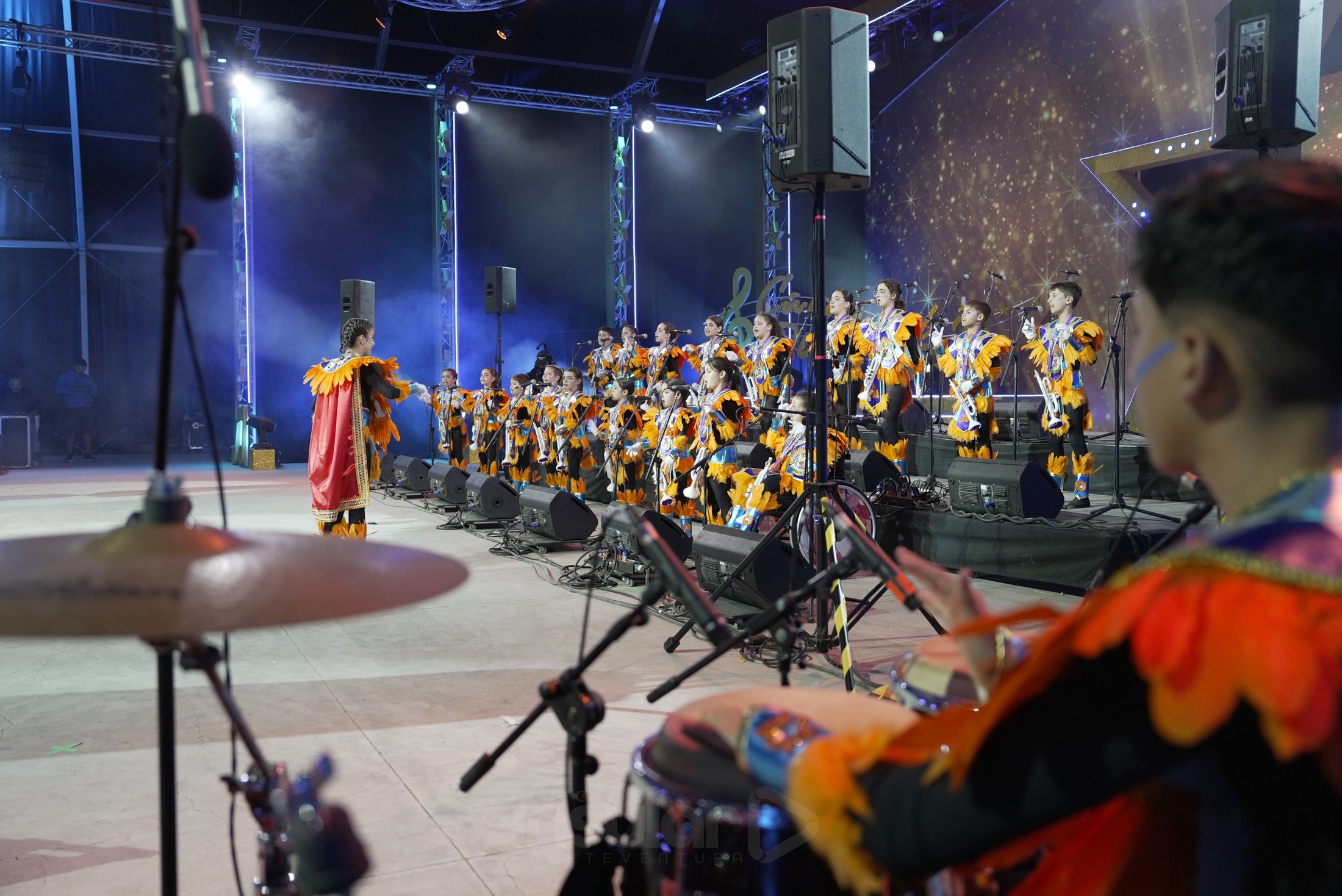 La murga infantil Pizpiretas, una de las agrupaciones más recientes del carnaval, subió al escenario con una actuación marcada por la denuncia social y el tono reivindicativo. Bajo su alegoría inspirada en el imperio del sol, los pequeños murguistas dejaron a un lado el disfraz para centrarse en los problemas que afectan a su día a día en Gran Tarajal.