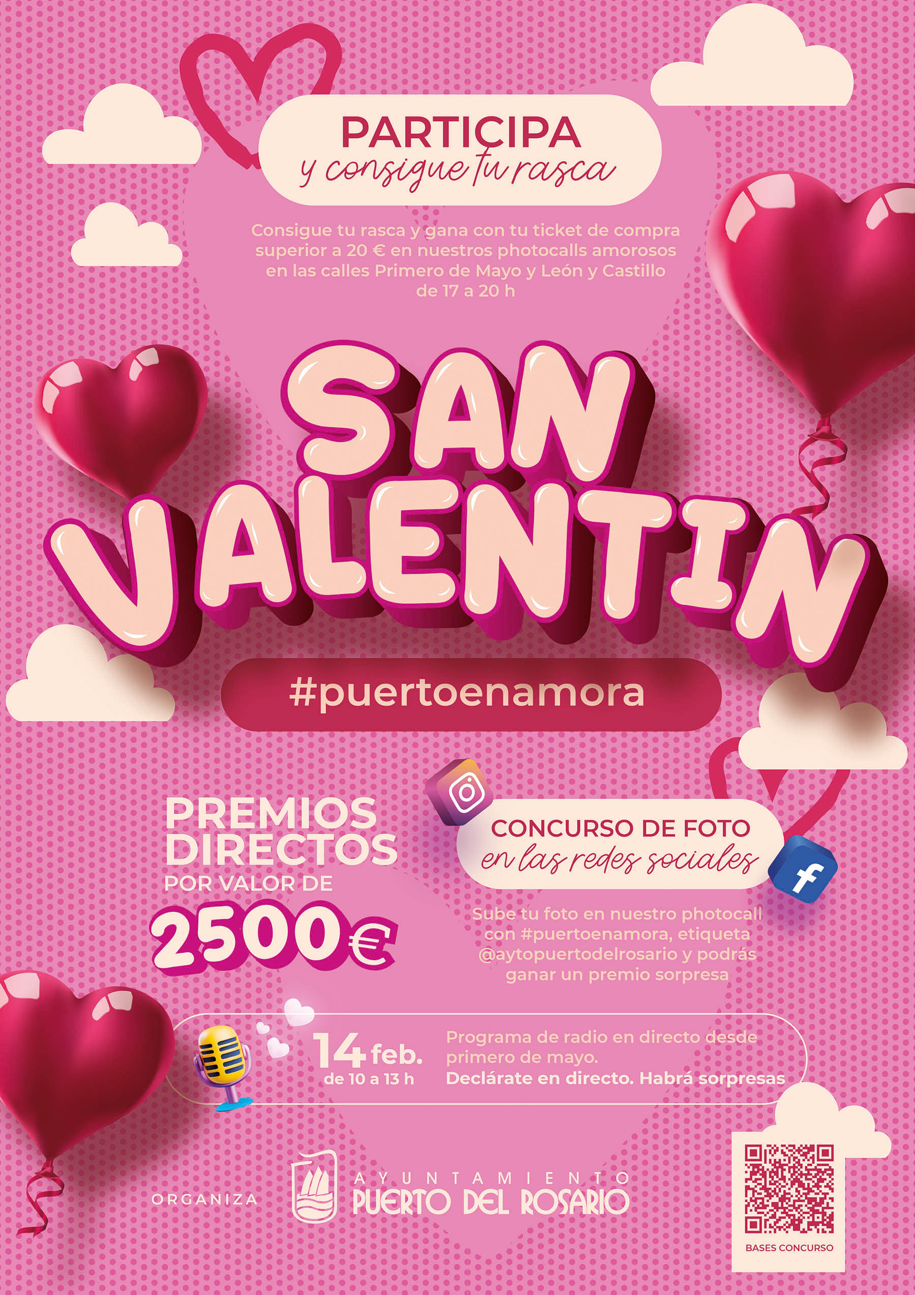 Además, los puntos de canjeo cuentan con un photocall especial, donde los participantes pueden tomarse una fotografía y participar en un concurso en redes sociales. Para entrar en la competición, deben subir su imagen con el hashtag #PuertoEnamora, etiquetando al Ayuntamiento en Instagram o Facebook. Las dos fotos con más ‘me gusta’ en cada red social recibirán un premio sorpresa. Este concurso finaliza el 14 de febrero a las 20:00 horas, y los ganadores serán anunciados en los días posteriores.