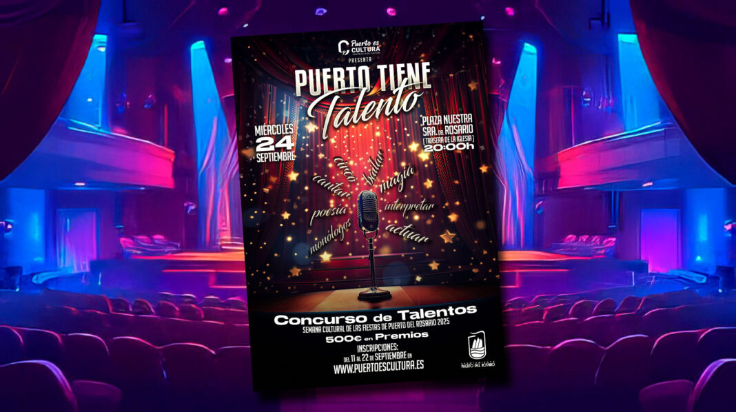 El Ayuntamiento de Puerto del Rosario ha abierto este lunes el plazo de inscripción para el certamen ‘Puerto tiene talento’, un concurso cultural que formará parte de la Semana Cultural de las Fiestas del Rosario 2025 y que se celebrará el próximo miércoles 24 de septiembre, a las 20:00 horas, en la Plaza Nuestra Señora del Rosario (trasera de la iglesia).