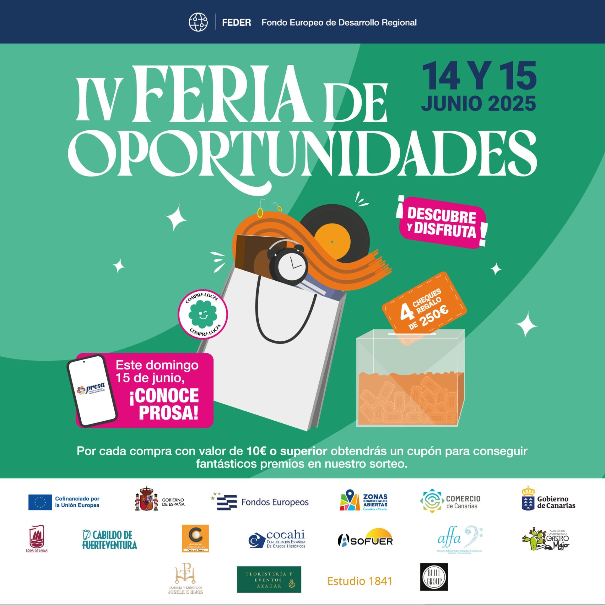 El centro de la capital majorera se prepara para vivir un fin de semana de dinamización comercial, entretenimiento y solidaridad con la IV Feria de Oportunidades, que se celebrará los días 14 y 15 de junio. Organizada por la Asociación de Empresarios de Puerto del Rosario, la iniciativa contará con la participación de más de 30 comercios locales que ofrecerán descuentos de fin de temporada, talleres creativos, zonas infantiles, música en directo y gastronomía solidaria.