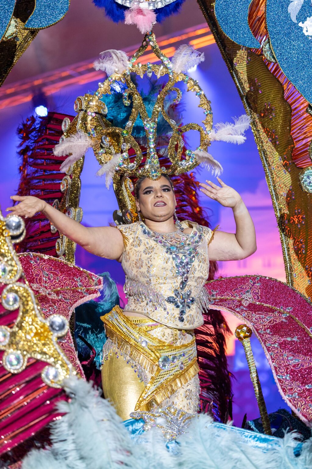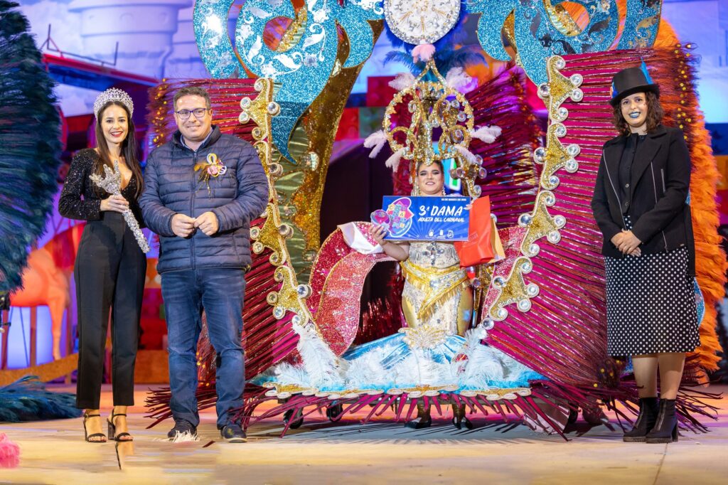 La representante de la Asociación de Empresarios de Puerto del Rosario lució la fantasía «Simplemente amigos», un diseño de Giselle Ortega, conquistando al jurado y al público con su imponente puesta en escena.
