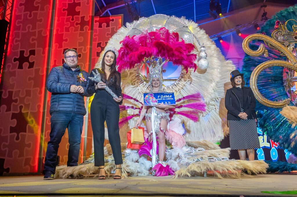 - Primera dama de honor: Laura Cerdeña Hernández, quien representó a Droben Events SL con la fantasía “Pasión”, diseñada por Luis Miguel Rodríguez Roger.