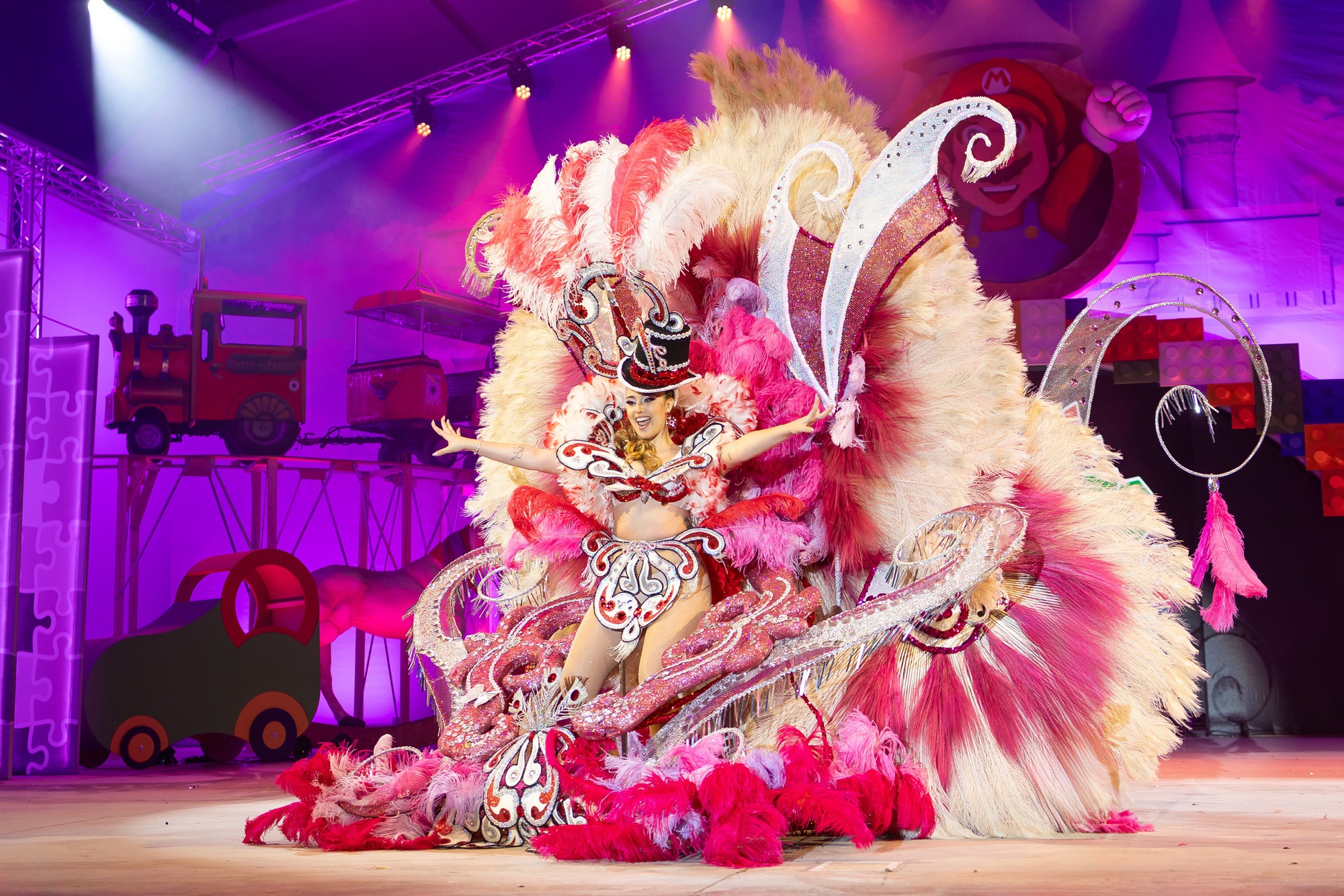 La representante de la Asociación de Empresarios de Puerto del Rosario lució la fantasía «Simplemente amigos», un diseño de Giselle Ortega, conquistando al jurado y al público con su imponente puesta en escena.