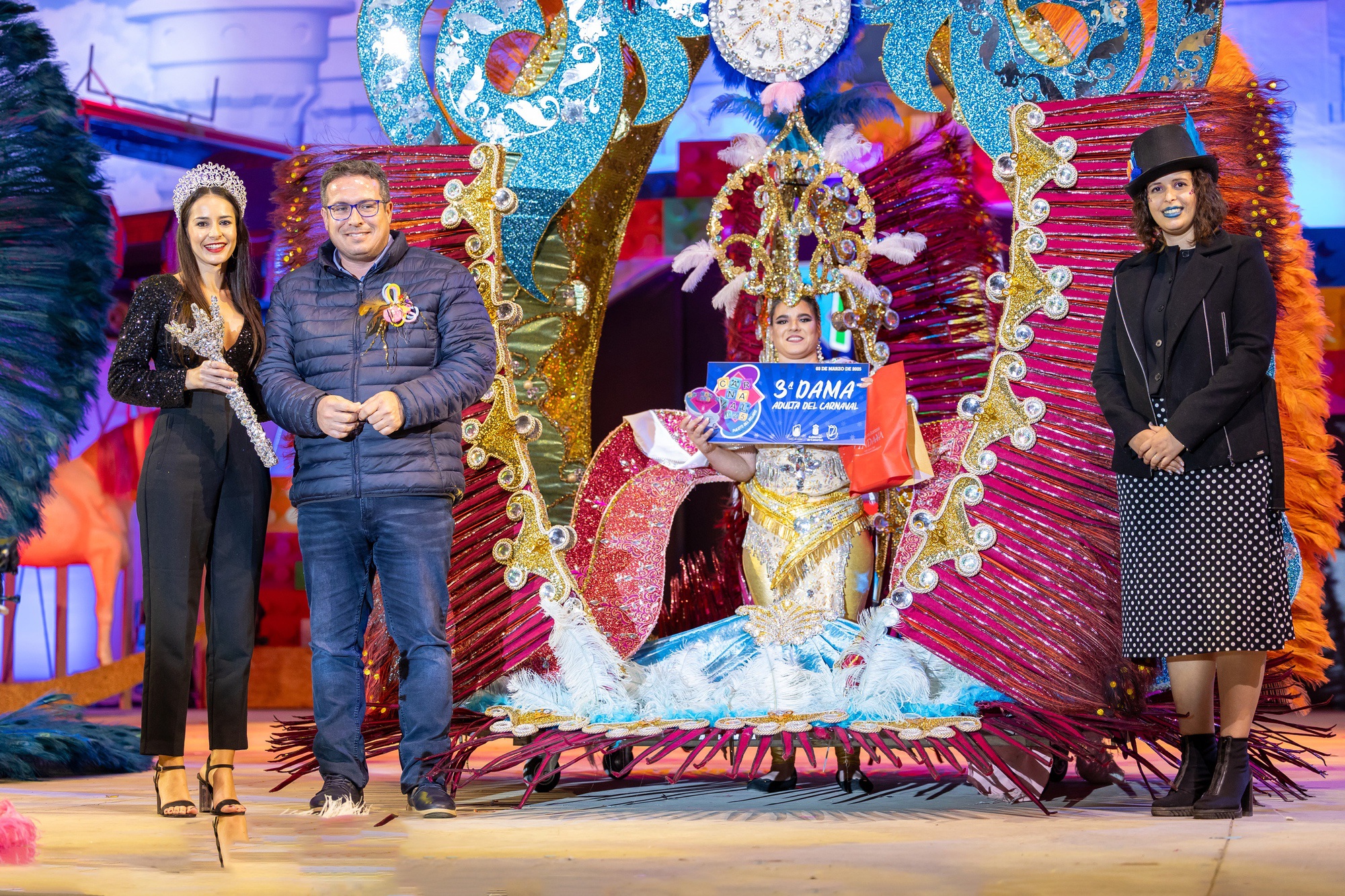 - Segunda dama de honor: Ariadna del Carmen Cedrés Llanes, con “Sueña conmigo”, un diseño de Dailo Rodríguez, representando a los grupos del carnaval de Puerto del Rosario.