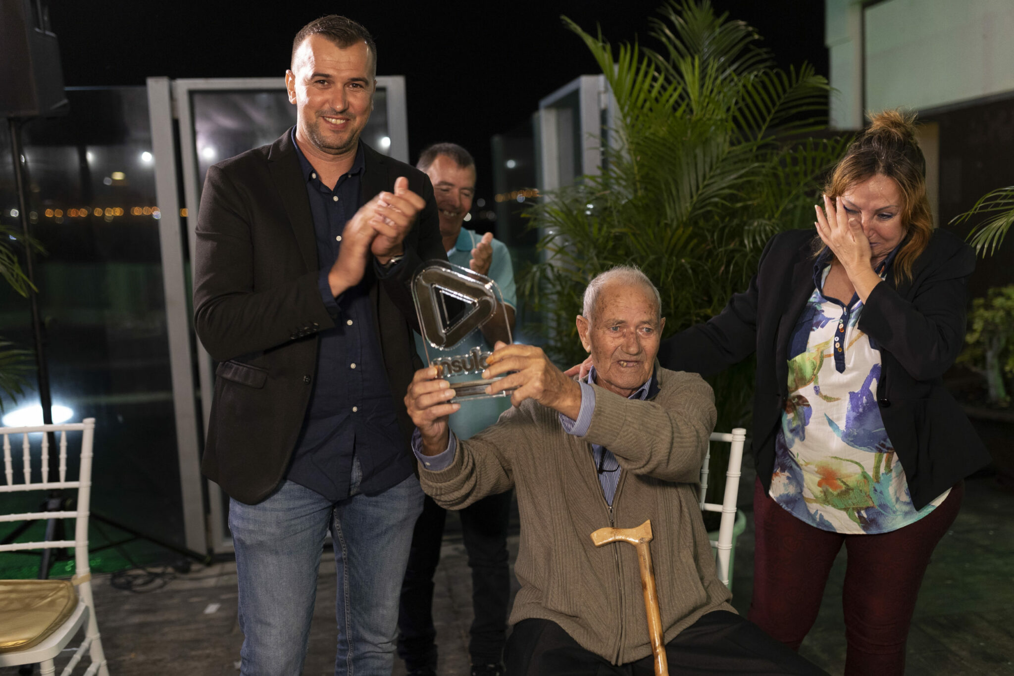Uno de los momentos más emotivos de la noche tuvo lugar cuando el edil de Antigua Jonathan Peña entregaba la distinción a Nicolás Cabrera Herrera. Aunque hoy en día está retirado, muchos lo consideran todavía el Comisionado del Mancomún Sur de Antigua por su amplio conocimiento del campo y del millar de cabras que pastan por la zona.