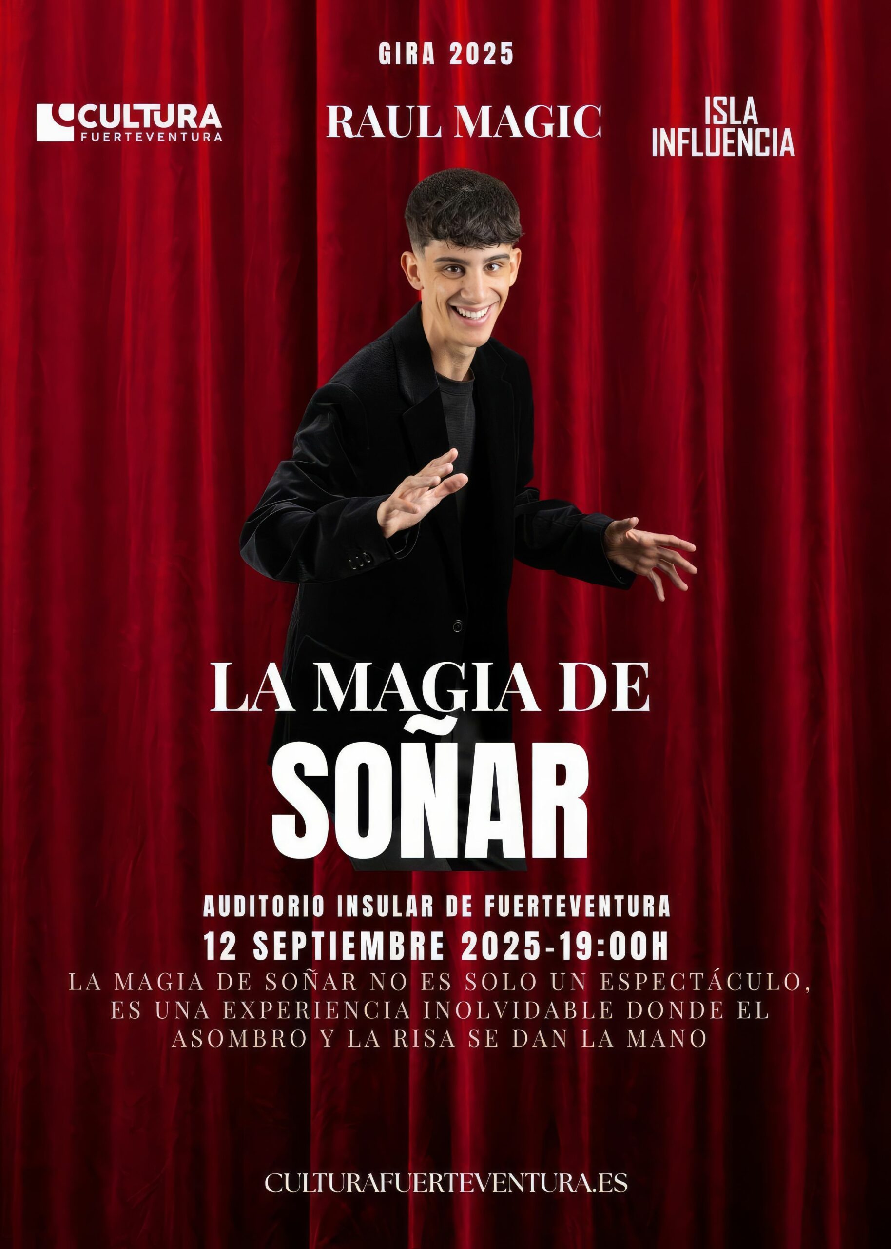 El Auditorio Insular de Fuerteventura se prepara para recibir este viernes, 12 de septiembre a las 19:00 horas, a uno de los artistas más prometedores del panorama canario: Raúl Peña Sosa, conocido en todo el mundo como Raúl Magic. Su espectáculo “La magia de soñar”, presentado Isla Influencia y Cultura Fuerteventura, no es solo un show de magia: es una experiencia que combina emoción, humor, talento y cercanía.