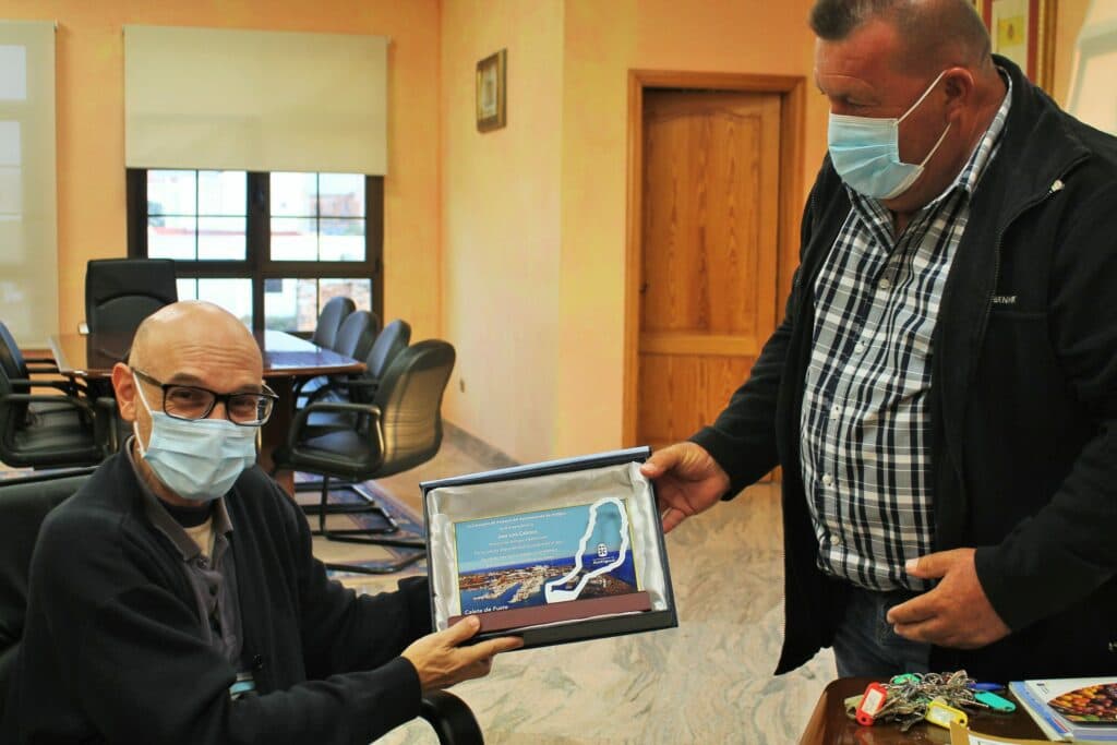 El alcalde ha entregado al párroco Jose Luis Cabrera una placa como reconocimiento a esta colaboración, tras un cordial encuentro de ambos en el Ayuntamiento de Antigua, en el que han podido tratar otros temas como la preparación de los oficios de Todos los Santos, retomando de nuevo este año la oración en el Campo Santo de Antigua el próximo 1 de noviembre.